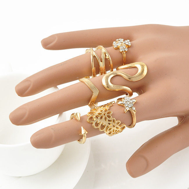 7 Cute gold costume jewelry rings. These go add a funky look to any mani selfie.