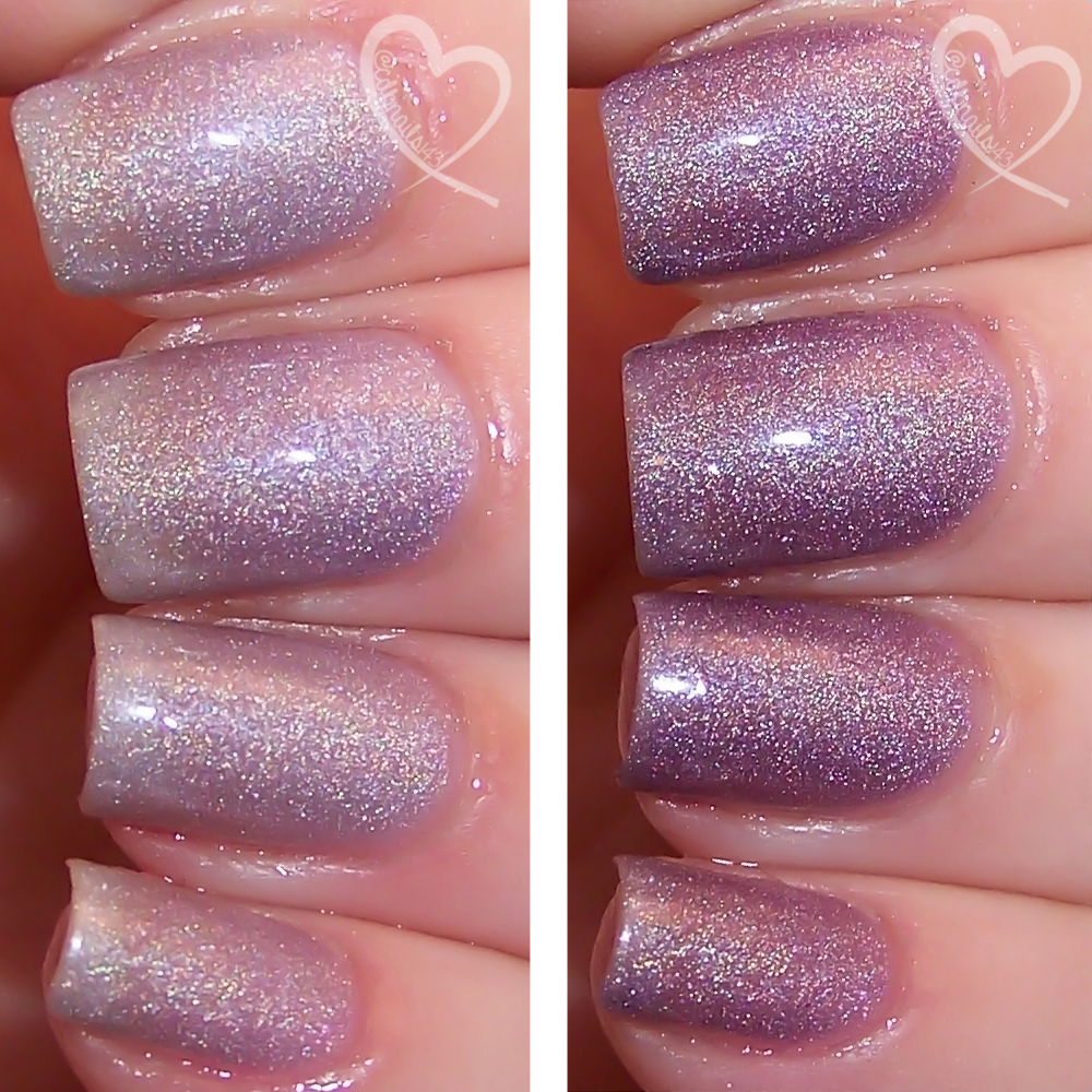 Please share your creations on Twitter or instagram #GoomBayGal This beauty is our one and only mood polish that actually changes more than two colors. A true mood polish. Changes from a silver sheer holographic to purple or blue. Dont be surprised if you find it turning pink as well. ;-)